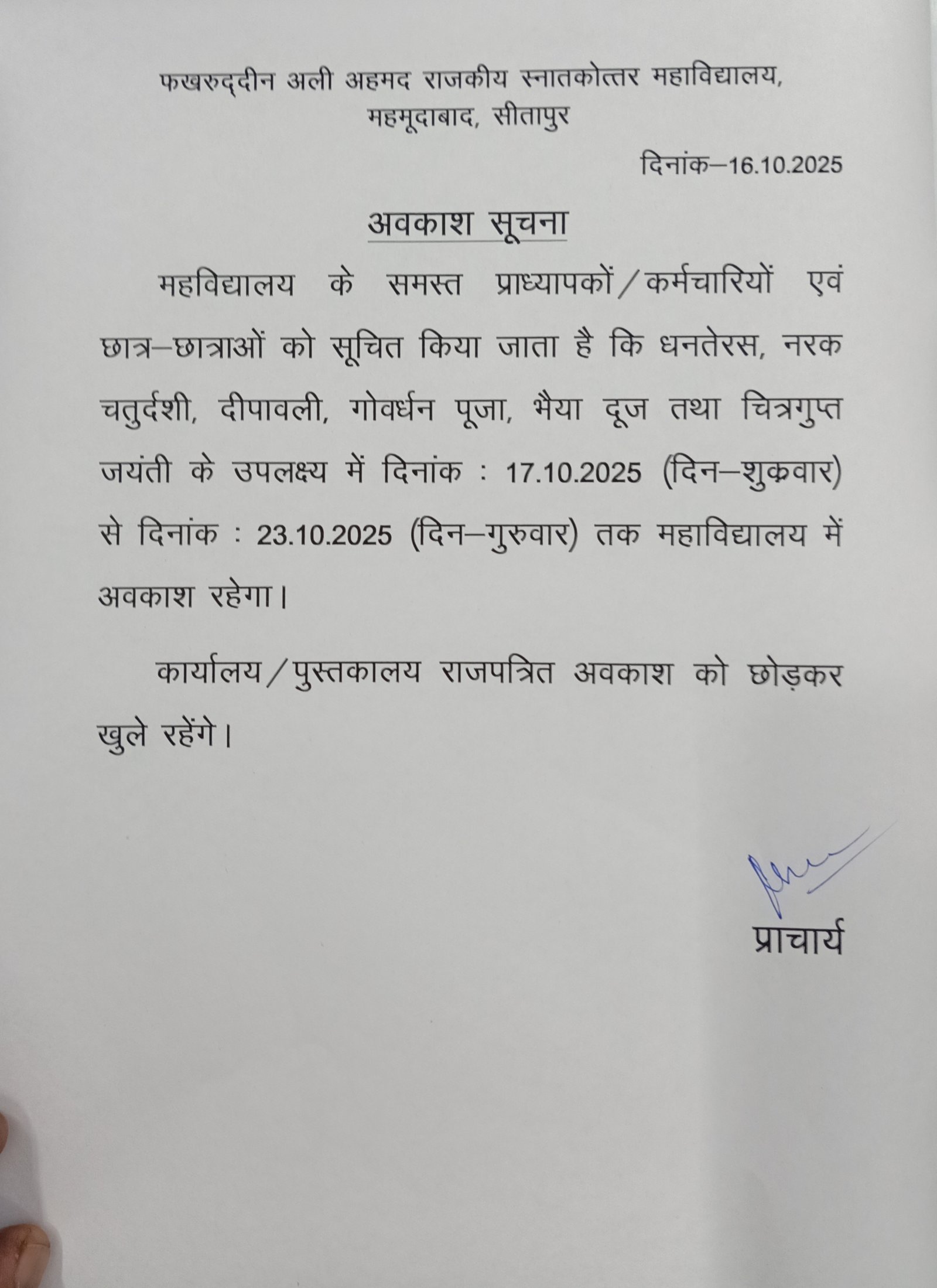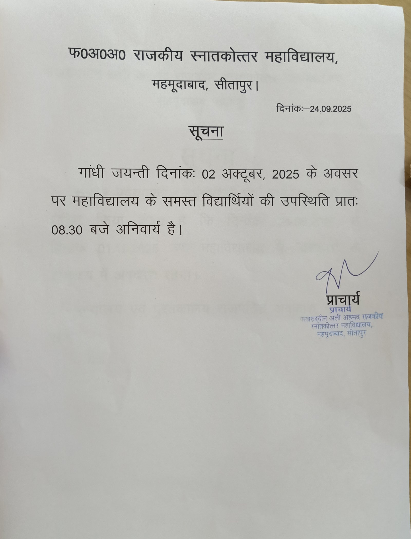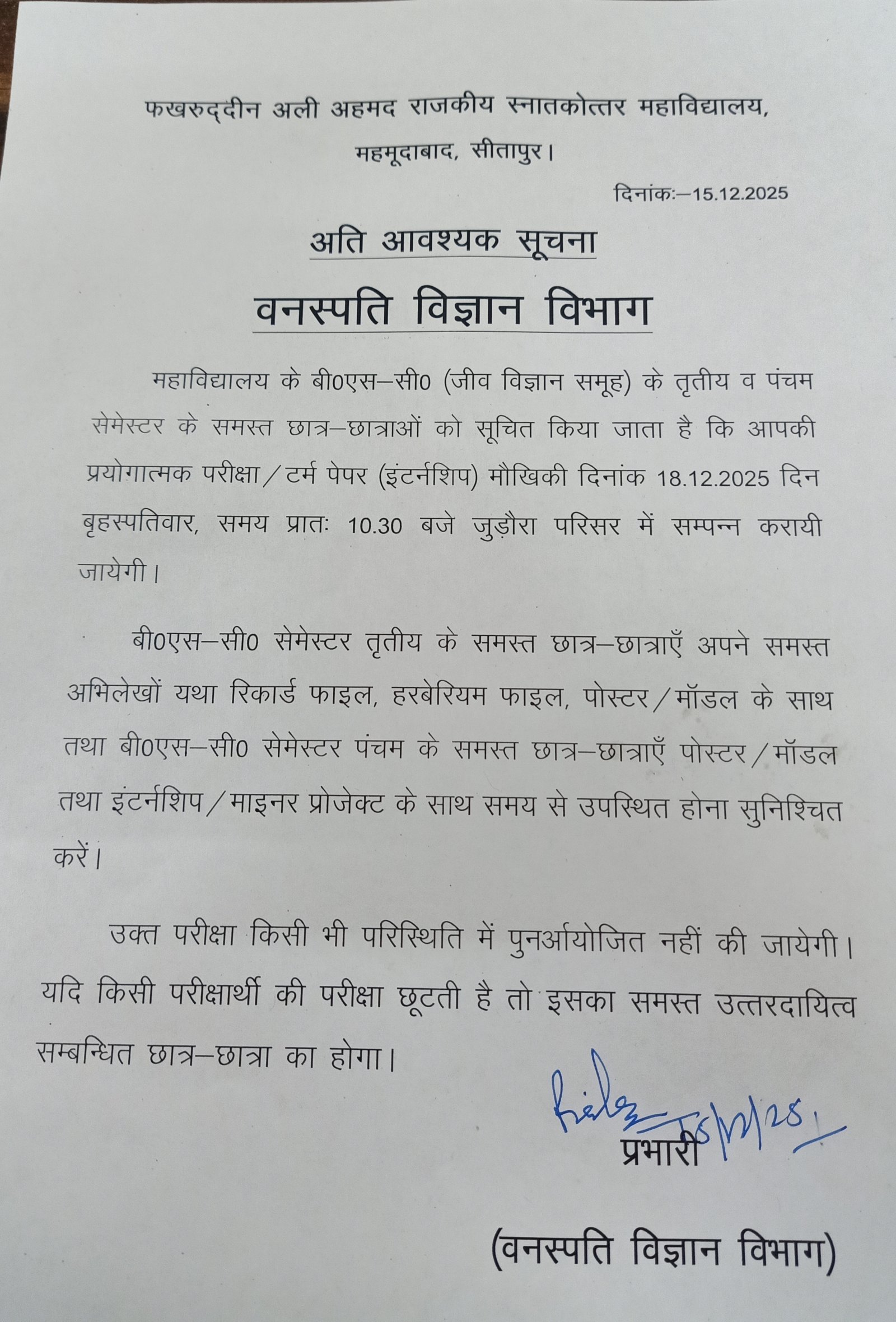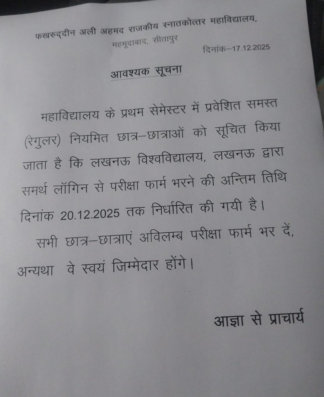 Fakhruddin Ali Ahmad Govt. Post Graduate College,Mahmoodabad, Sitapur