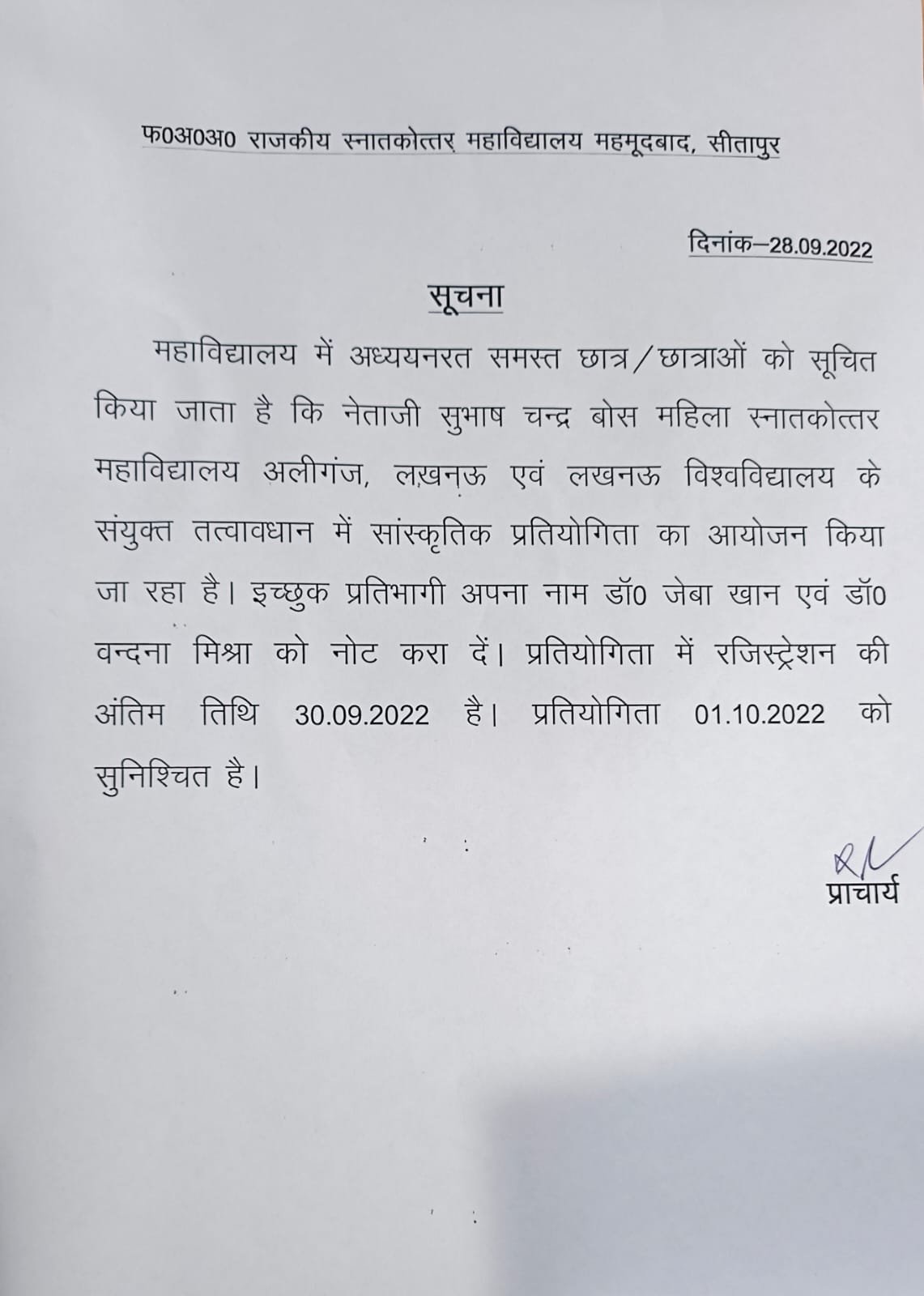 सांस्कृतिक प्रतियोगिता के सम्बन्ध में