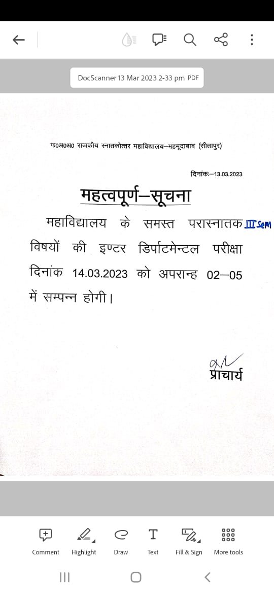 Interdepartmental paper of PG 3rd semester will be held on 14.03.2023