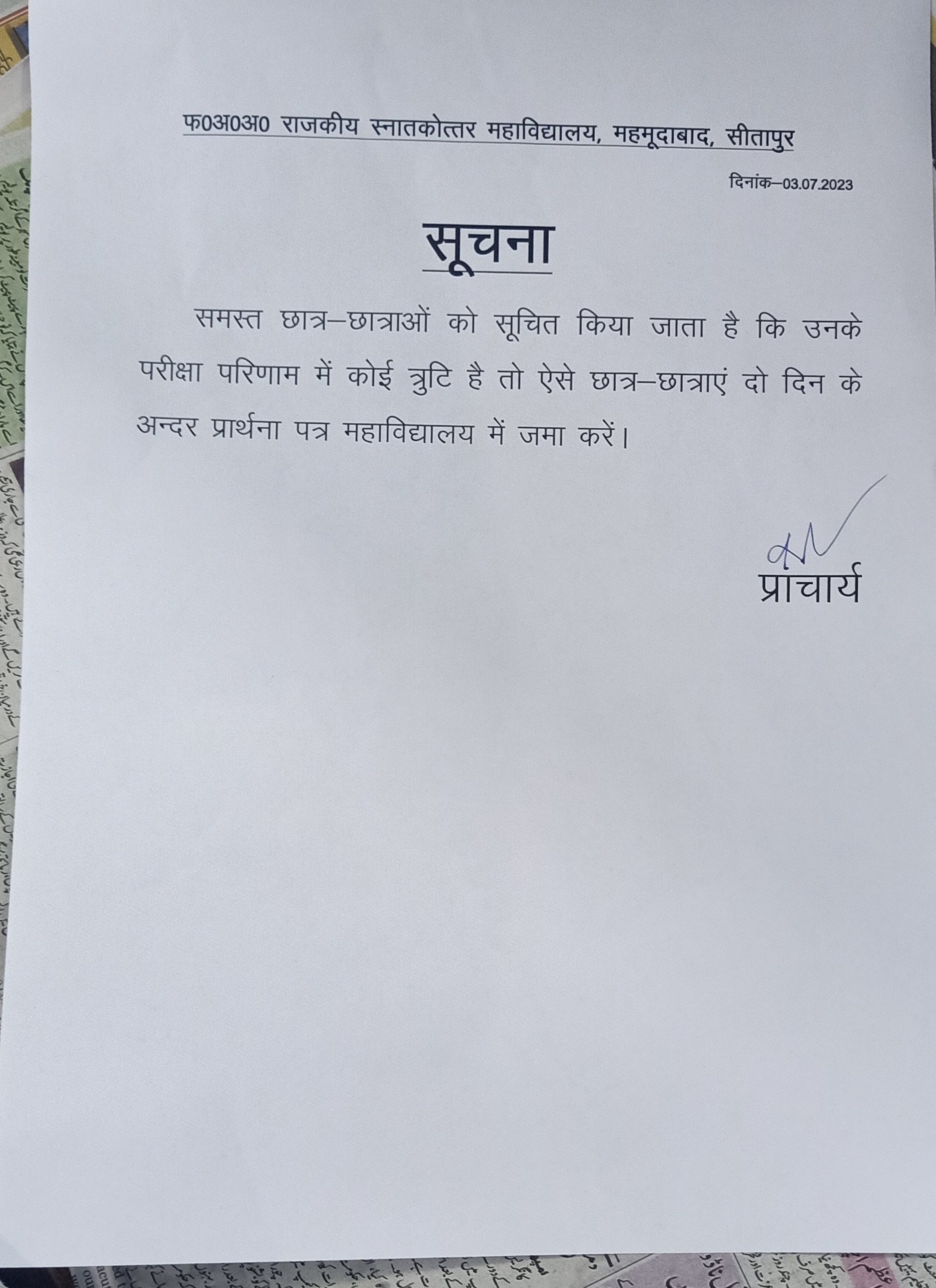 Notice Regarding Error in Results