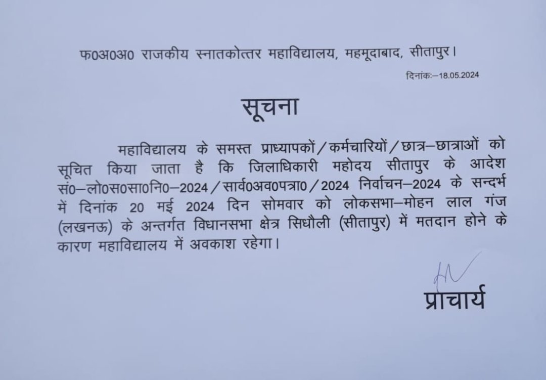 Notice Regarding Holiday on account of election on dated 20/05024