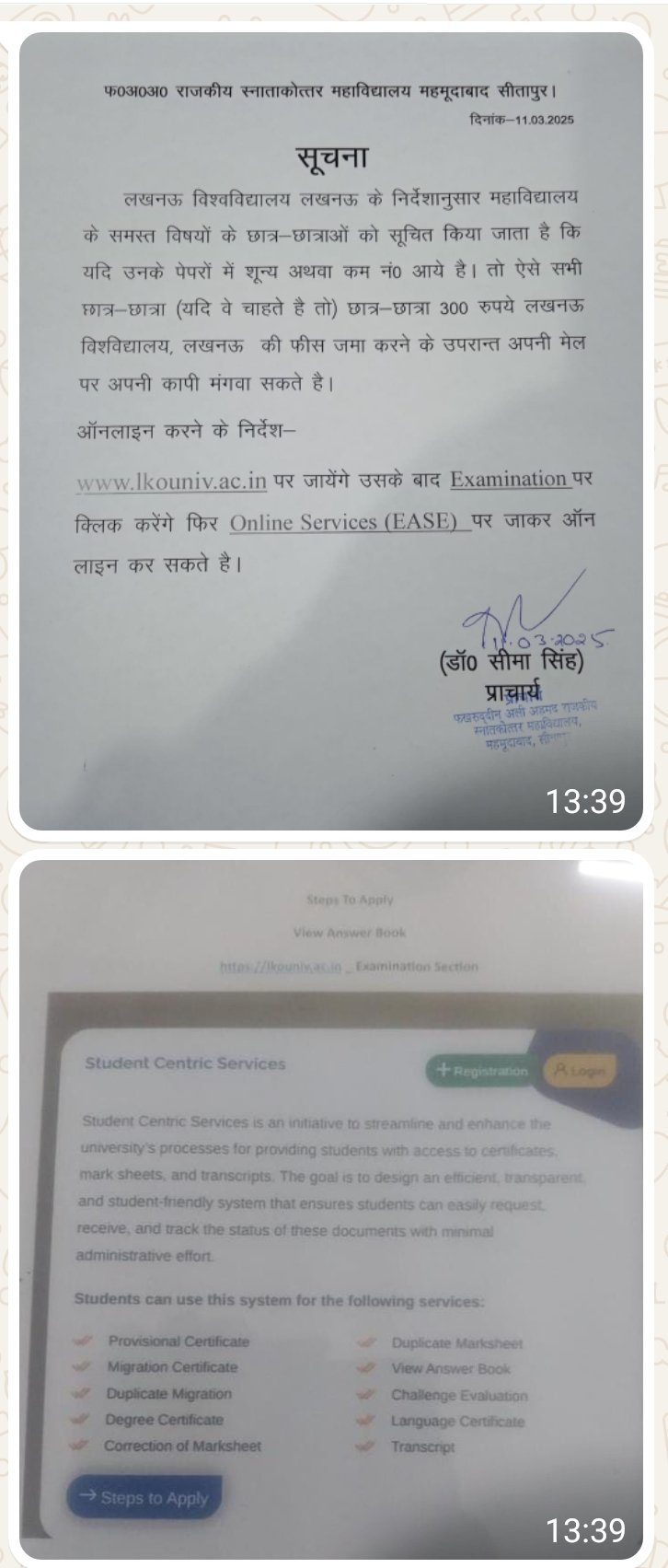Notice Regarding Examination Result
