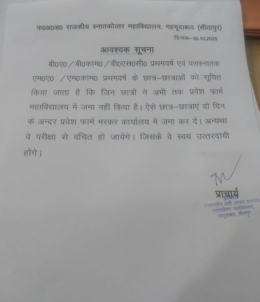 Notice Regarding UG I and PG I admitted students