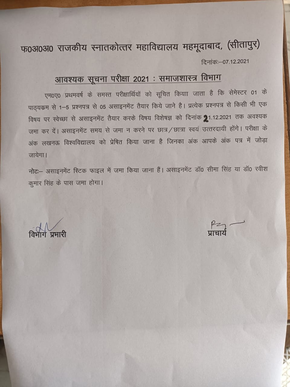 एम० ए ० समाज शात्र प्रथम वर्ष के प्रथम सेमेस्टर हेतु एसाइनमेंट डॉ ० सीमा सिंह एवं डॉ ० रवीश सिंह के पास जमा करें |