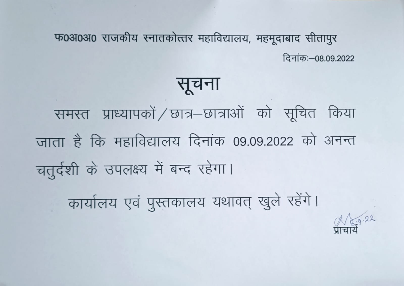 अनंत चतुर्दशी के अवकाश के सन्दर्भ में