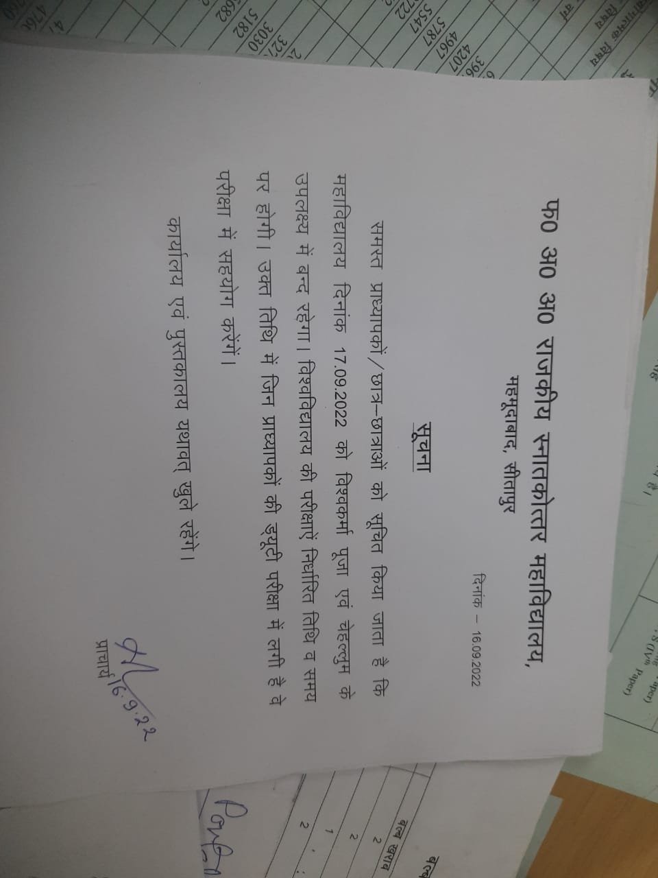 Holiday on 17.09.2022