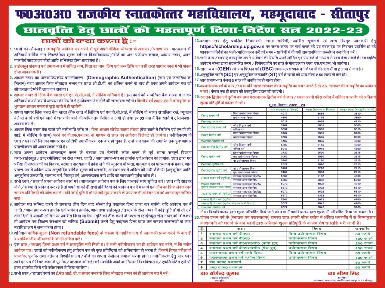 सत्र 2022-23 के लिए छात्रवृति सम्बन्धी दिशा निर्देश